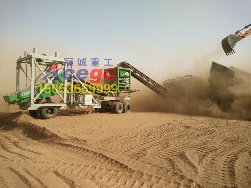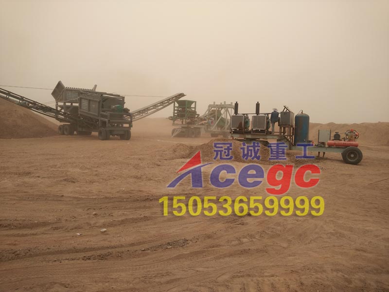 冠誠重工新型旱地選金設(shè)備也叫干選風(fēng)選金礦設(shè)備,適用于干旱,缺水,沙漠等風(fēng)力資源豐富的地區(qū),該款為移動(dòng)車載式沙金機(jī)械,移動(dòng)方便,適合復(fù)雜地形使用。
